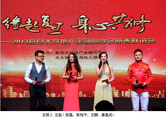 执行会长李元红老师在晚会上向同学们汇报了一年来的工作。感谢学校及学院领导、复旦校友会对复旦地产金融EDP项目及同学会的大力支持和帮助!感谢杨浦区的领导、光大银行作为战略合作伙伴对同学会年会给与的大力支持与帮助!感谢年会筹备组的同学每周从四面八方赶来参加筹备会,从而使得年会得以成功召开;感谢各位同学慷慨捐赠和做义工,同学会所的装修才能顺利开工,并收到了价值约600多万元的捐赠物和现金,希望在今年上半年建成并投入试运行。届时我们同学会有了真正的家!真诚地希望广大同学能常回家看看!